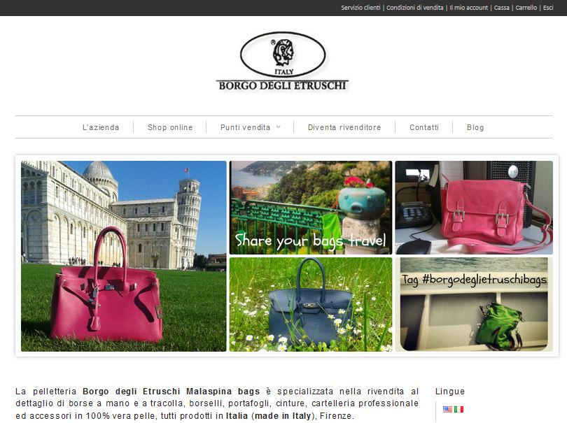 - lo shop online suddiviso in categorie per uomo e donna, in particolare borse; ogni prodotto riporta una photogallery, una descrizione accurata, il pellame impiegato e la possibilità di scegliere la variante di colore